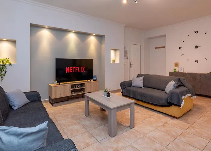 Tento apartmán o rozloze 105 m^2 se nachází 10 km od letiště Mezinarodni letiste Rhodos.